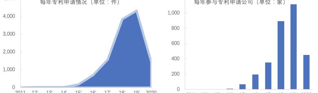 其中,超過90%的專利申請集中在2018-2020年之間,合計申請專利2.72萬件。
