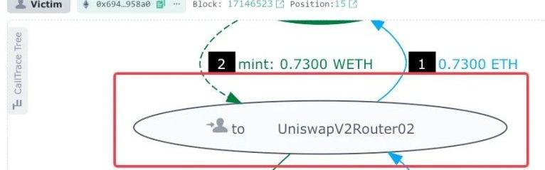 UniswapV2Router02路由了0.2139ETH,受害者收到了0.2139WETH。