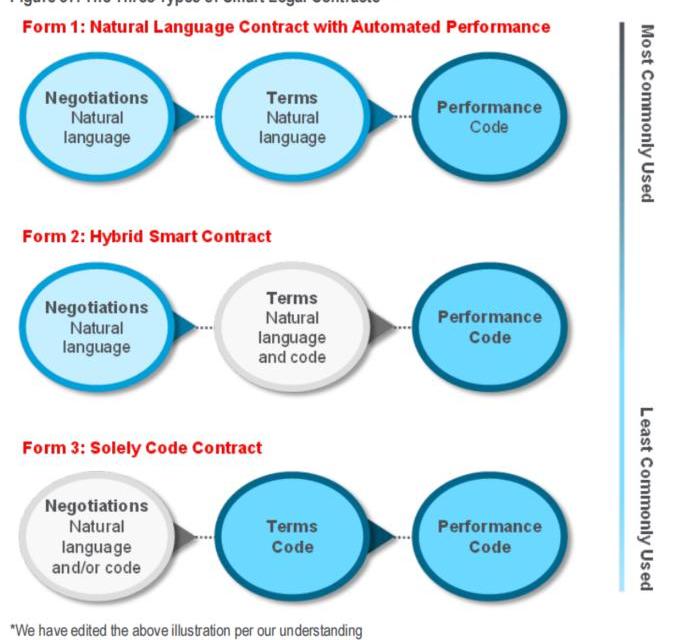 出于我們報告的目的,我們做了一個區分:法律智能合約是一種智能合約,但具有與智能合約不同的特征: