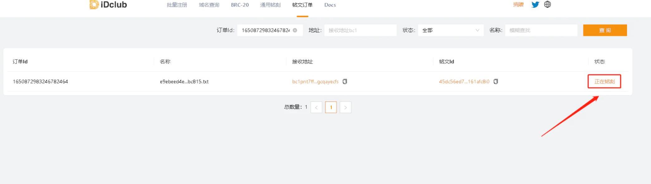 等顯示正在銘刻,就是在等鏈上出塊了,可以點擊正在銘刻查看出塊情況。