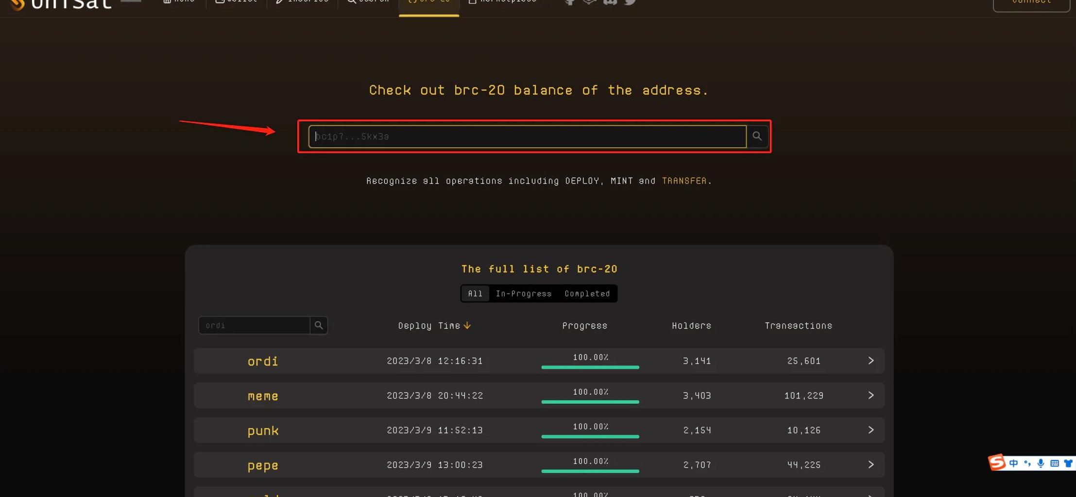 現在去?unisat?查我們的資產,輸入你的bc?1?q地址。