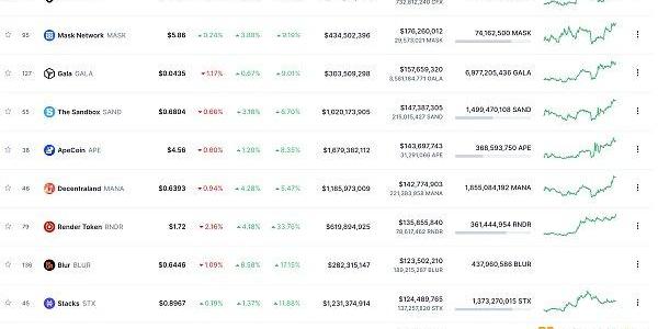 24小時NFT交易量、交易量前十項目數據來源:Coinmarketcap