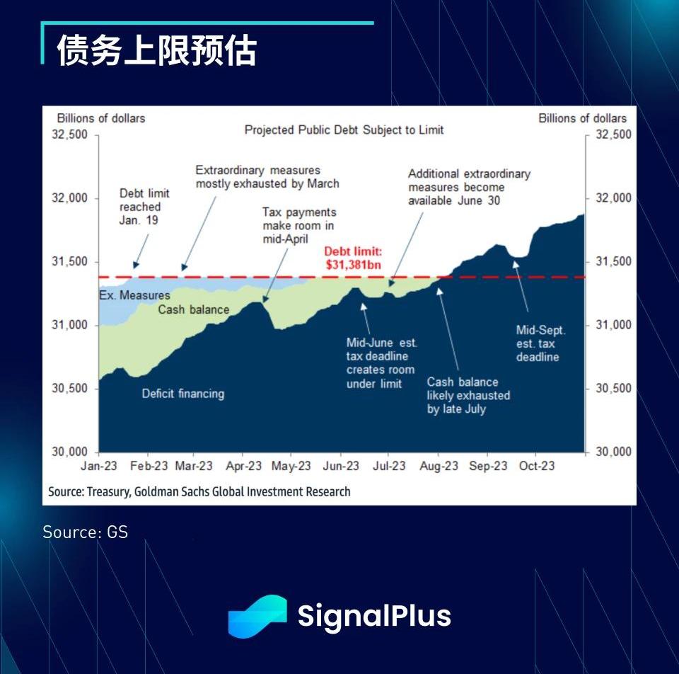 在方面,昨天共和黨控制的眾議院通過了債務上限立法,試圖在未來12個月內將債務上限提高1.5萬億美元,但這在民主黨掌控的參議院根本沒有通過的機會,顯示在債務上限問題上漫長的國會邊緣政策之路正要開始。好消息是,美國財政部稅收收入在4月25日超出預期,僅同比下降14%?,而不是原先預估的-28%和本月早些時候顯示的-35%?,這可能意味著最終債務上限的突破時間點將在7月左右,而不是最糟情況下的5月下旬/6月初。
