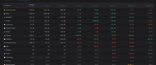 與其他借貸協議相比,Radiant的7日收益率排名第一。過去24小時的數字是……