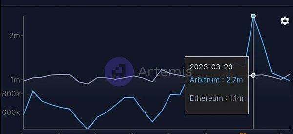 1900/1/1 0:00:00近期,以太坊Layer2擴展協議Arbitrum空投成為了加密貨幣社區熱議的當紅話題。鏈上數據顯示,Arbitrum在3月22日的交易數超121萬筆,創歷史新高,同時超過以太坊主網的108萬筆交.