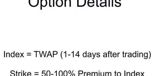 在這種情況下,項目方會選擇將認購期權的行權價設置為指數價格的50%-100%的溢價。由于指數價格通常可以在鏈上或其他市場上確定,行權價格不需要在交易達成時就已知。
