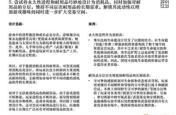 該設計的意義在于,通過嘗試將耐用品巧妙地設計為消耗品,同時加強對耐用品的分層,可維持不同層次耐用品的長期需求,繼續延伸的話還可以通過解鎖其流動性,在增加游戲趣味的同時進一步擴大交易空間。