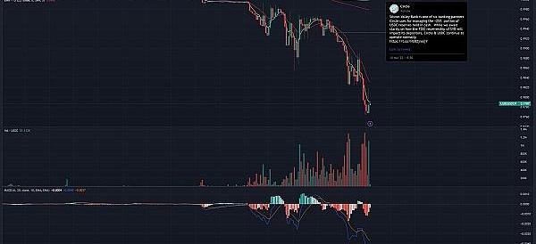 SVB倒閉的黑天鵝引發了一系列連鎖危機,并蔓延至了加密市場。3月11日,穩定幣USDC發行商Circle發推表示,在其共計約400億美元的資金儲備中,有大約33億的現金儲備存放在SVB。Circle發布聲明后,其對SVB的風險敞口同樣引發市場的恐慌。為了減少損失,投資者開始拋售他們的USDC以換取如Tether(USDT)的其他穩定幣,USDC面臨嚴重擠兌,其價格出現持續性脫錨,最低降至0.88美元。同時,Binance、Coinbase等中心化交易平臺均宣布關閉USDC的部分兌換服務。