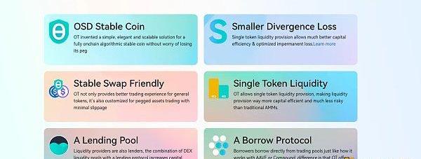 簡介:OnchainTradeProtocol是一種新的DeFi協議,允許單個代幣與OSD組成流動性,從而為包括交易者、流動性提供者和第三方項目在內的所有參與者帶來更優化的體驗。OSD是OT推出的穩定幣,也是該平臺列出的所有資產的記賬單位。