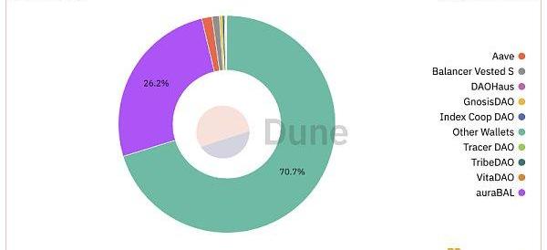 據Dune數據顯示,Aura的$veBAL持有占比為26.2%?,通過$veBAL的治理賄賂,LP持有者將獲得更高的收益率。而Balancer流動性治理戰爭的優勢在于其比Convex更高的賄賂資本效率,最終Aura也將因此受益。