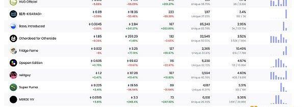 24小時NFT交易量、交易量前十項目數據來源:Coinmarketcap