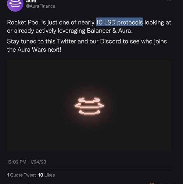 近期市場熱度又轉向了LSD賽道,LDO、FXS、RPL為主的token紛紛上漲。對于LSD賽道,用戶關注點在于增加LSD的流動性,其中談論較多的項目是AuraFinance——0x?Maki?創建的基于Balancer生態的收益治理平臺,用戶通過持有BAL和AURA,為Balancer上的LP和BAL質押者提供最大程度的收益激勵。相比LSD協議,AuraFinance關注度并沒有那么高,但該項目一直在「偷偷做事」。DeFi研究員X撰寫了關于AuraFinance的文章,BlockBeats編譯如下: