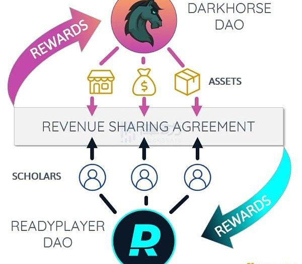而在鏈上游戲中實施傳統的DeFi機制,則為產生收益的資產的借貸開辟了一個全新的市場,DAO-2-DAO協議正在出現。其中,位于這些游戲供應方的DAO,可收集和「培育」游戲內資產,如?DarkHorseDAO?可以通過利用這些游戲需求方的DAO獲得收益;還比如擁有大量學者的?ReadyPlayerDAO。