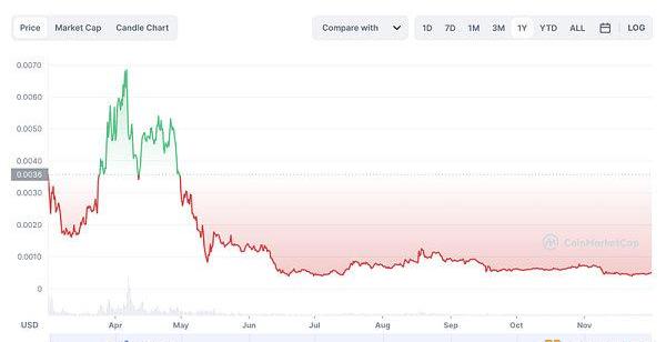 JPEG是一個治理代幣,沒有太大的經濟價值,總供應量為69,?420,?000,?000?。從?Coinmarketcap?上的數據可以看出,JPEG'd?剛上線時有一波小高潮,后續保持平穩,約等于?0.0005?美元。