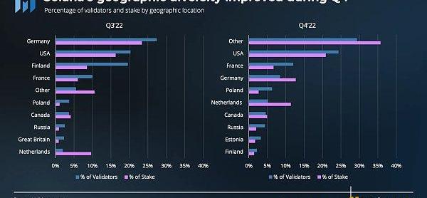 在FTX和Hetzner事件發生后,網絡的質押和去中心化保持穩定,且改善了其狀況。