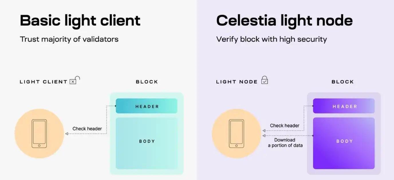 比如,Celestia的輕節點通過下載一小部分數據來使用數據可用性抽樣,他們依賴「少數誠實假設」,這就會大大提高安全性。