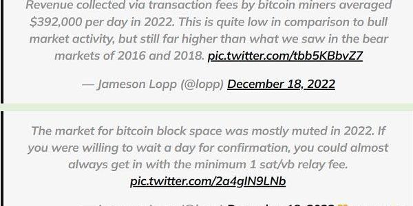 2022年是一個獨特的級聯信用危機和重要主體公然欺詐的周期。由此導致的對該領域信心和興趣的喪失,是我們在之前周期中曾多次看到的景象。我們這些致力于比特幣生態系統的人將繼續開發建設,增加價值;我們無法控制市場,但我預計市場情緒會反彈,我們將看到比特幣的另一波采用浪潮,被最需要它的大眾所采用。