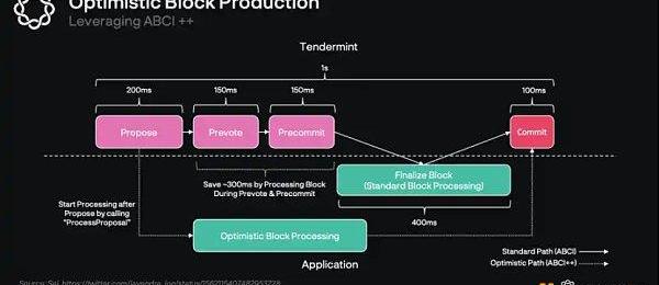 在共識的提案步驟之后,應用能夠開始優化處理區塊,與預投票和預委托階段并行。然后,Sei將開始「通過優化」將狀態變更到一個臨時的候選狀態,直到被共識接受。如果不被接受,區塊就會被放棄。在這個步驟中,有大量的數據需要處理,它可能相當緩慢。但通過經過優化狀態變化處理,我們可以縮短出塊的時間,并顯著減少延遲。