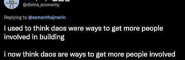 我在Twitter上詢問是否有人對DAO的看法發生變化。以下是我最喜歡的一些答案: