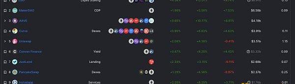 1900/1/1 0:00:00DeFi數據 1、DeFi代幣總市值:349.44億美元 DeFi總市值及前十代幣數據來源:coingecko2、過去24小時去中心化交易所的交易量11.