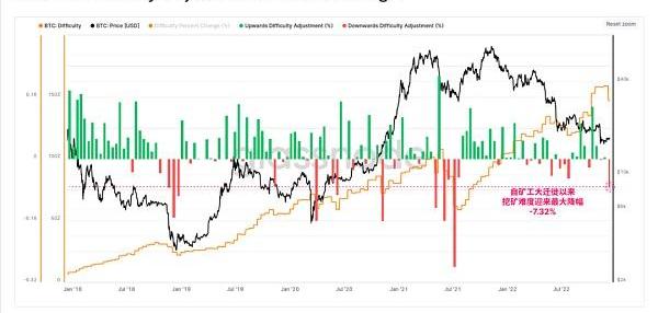 上周出現了自2021年7月采礦大遷徙以來最大的難度下調。難度下降了7.32%,意味著相當大一部分活躍的算力下線,這可能是持續收入壓力的結果。