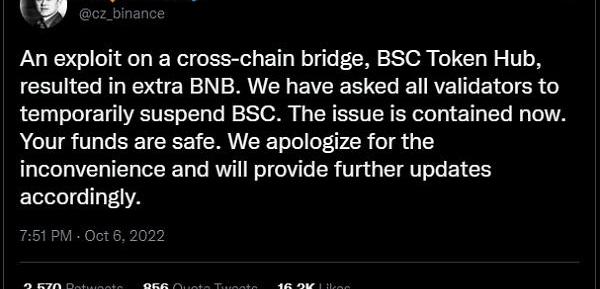 與此同時,如果出現問題,幣安幾乎可以要求BNBChain暫停,就像今年10月6日至7日期間那樣。理論上,BNBChain是一個獨立于中心化公司幣安的去中心化系統,但實際上: