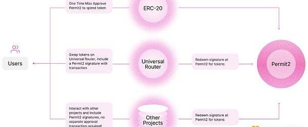 ?11?月?17?日?UniswapLabs?發布了兩個新的智能合約:Permit?2?和?UniversalRouter。其中?Permit?2?是一個代幣授權合約,可以在不同的智能合約之間安全地共享和管理代幣授權。隨著越來越多的項目與?Permit?2?集成,所有應用中的代幣授權可以標準化。