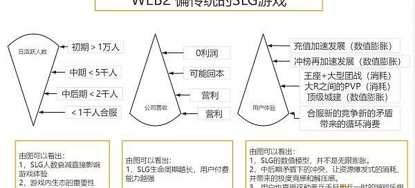1,?SLG需要先建立游戲生態,前期用戶留存多一些,用戶層次豐富一些,聯盟差距不要太大,過程中逐漸建立矛盾和沖突點。這種情況下,前期不賺錢。