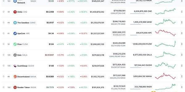 24小時NFT交易量、交易量前十項目數據來源:Coinmarketcap
