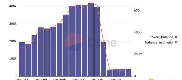在CZ發布推文后,FTX上持有的以太幣也大幅下跌,在11月5日至7日期間,有超過35.8萬個以太幣撤出平臺。