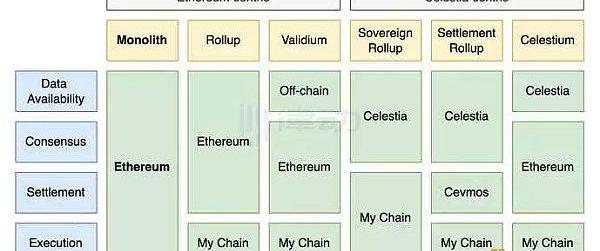 簡而言之,模塊化解決方案即將單體區塊鏈功能模塊化的功能堆棧,具體功能可大致分為: