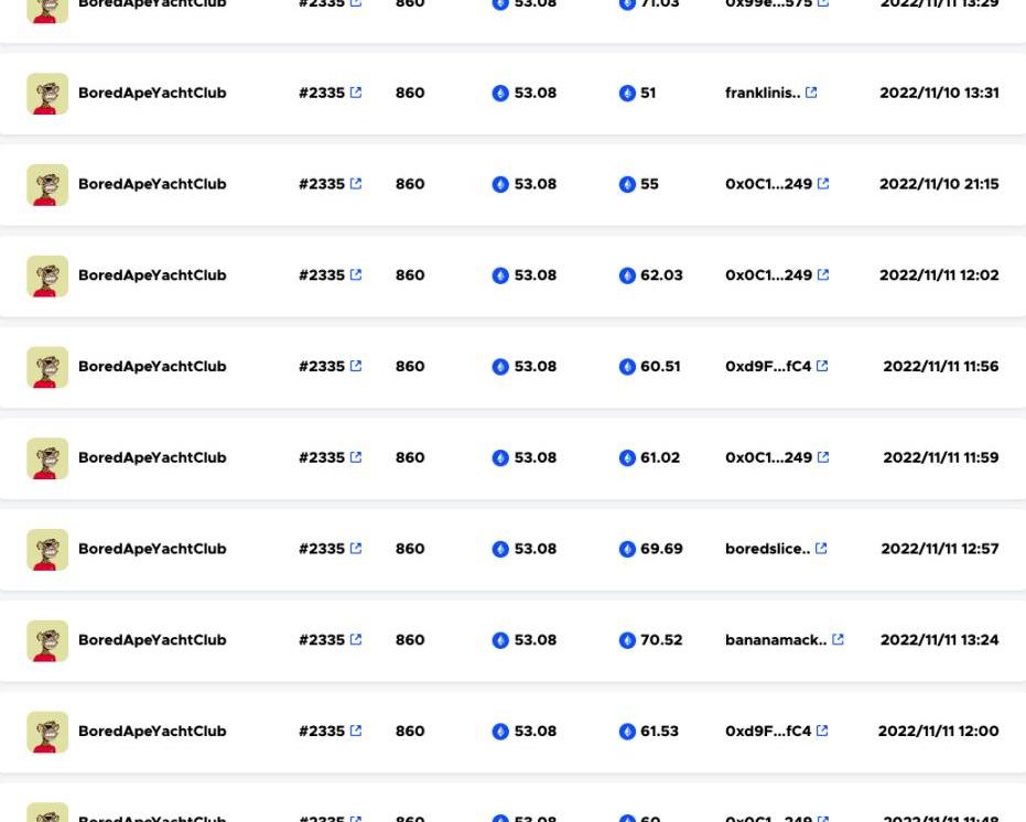 BendDAO聯合創始人PirateCode.eth持有的BAYC#2335在11月11日也進入了清算拍賣,在其清算保護期內遲遲沒有還款,想要低價拍下該NFT的用戶開始摩拳擦掌,拍賣價推高至71.03ETH,甚至有社區用戶玩梗PirateCode.eth的流動資金是不是被鎖到FTX了。