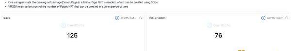 截止至11月4號,ArtGobblers產生的PagesNFT共計為125個,掌握在76個用戶ID手中,也就是說目前市面上只有9%的用戶ID擁有PagesNFT。