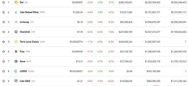 DeFi項目鎖定資產前十排名及鎖倉量數據來源:defillama