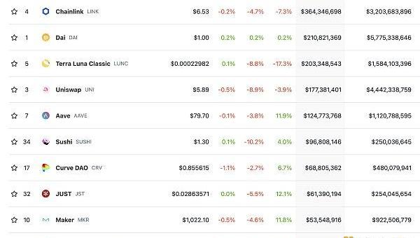 1900/1/1 0:00:00DeFi數據 1、DeFi代幣總市值:465.1億美元 DeFi總市值及前十代幣數據來源:coingecko2、過去24小時去中心化交易所的交易量29.