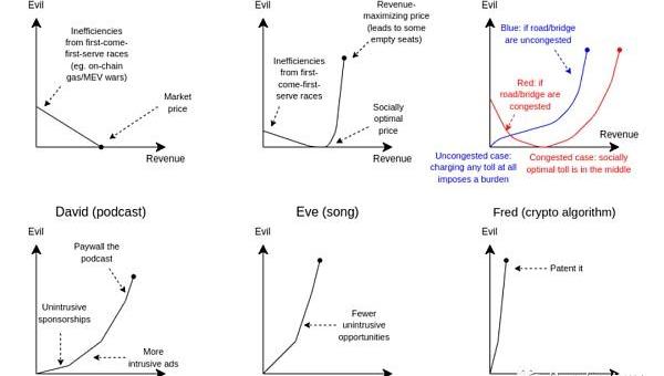 Revenue-EvilCurve與排他性和競爭性之間存在一個粗略的近似映射:較高的排他性意味著Revenue-EvilCurve的斜率較低,而競爭性告訴我們Revenue-EvilCurve的底部是零還是非零。但是Revenue-EvilCurve是一個更通用的工具,它使我們能夠討論遠遠超出排他性的貨幣化策略的權衡。