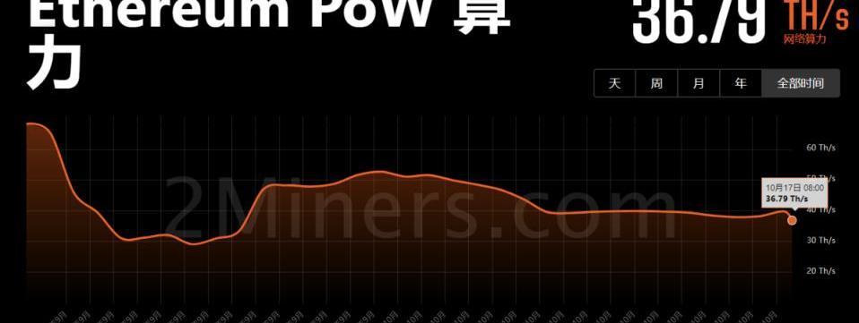 當前算力:36.79TH/S算力增(減)長情況:相比初始算力68.17TH/S,目前全網算力減少了31.38TH/S,降幅46%。承接原以太坊算力占比:約4.32%