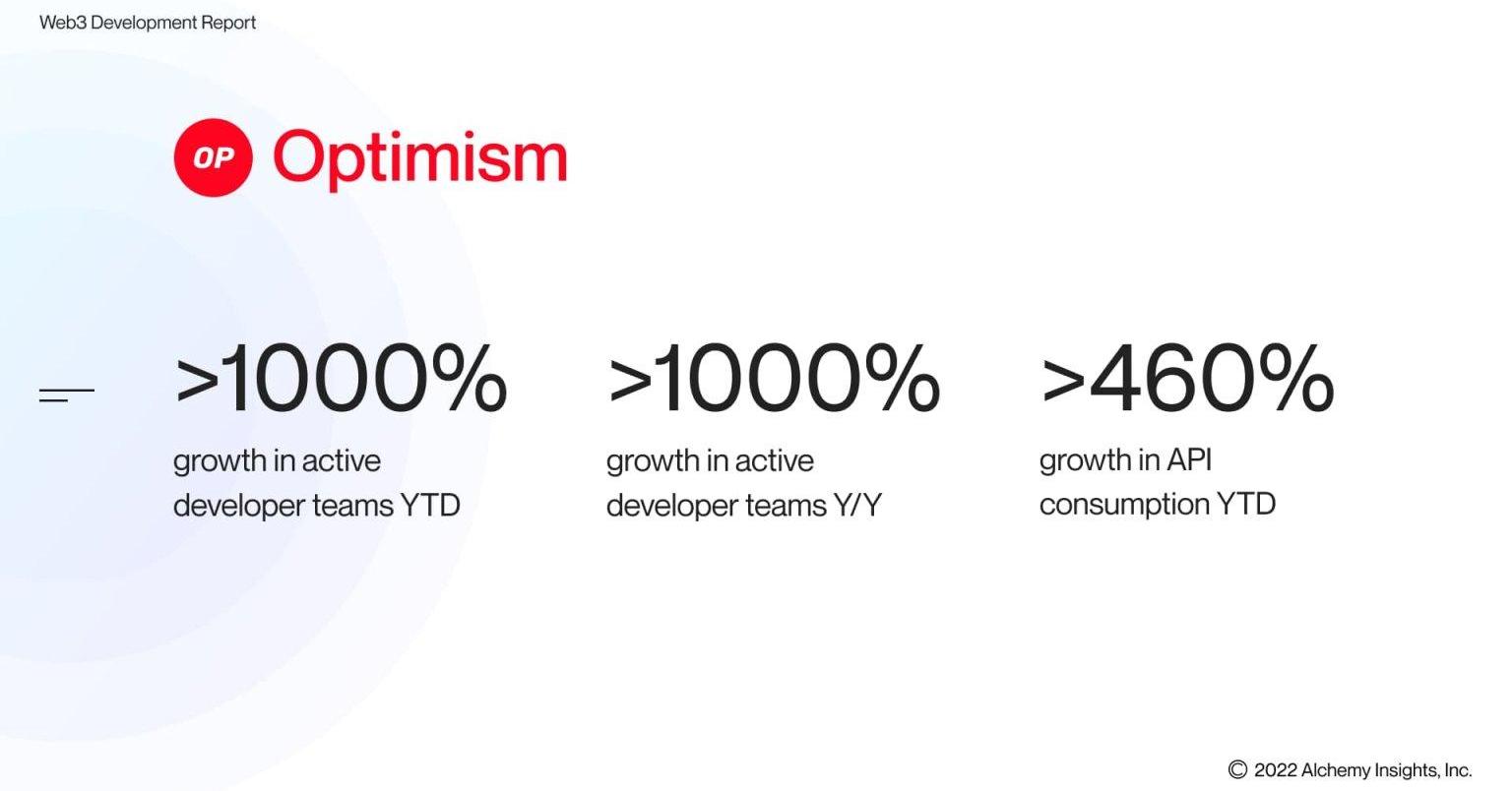 在2022年第三季度,Alchemy的增強型API請求今年迄今已確認擴展了10倍,確認了DeFi、DAO和游戲以及從核心節點API到更高級基礎設施的擴展。Alchemy的增強API專為需要工具來處理區塊鏈傳輸、代幣元數據、代幣余額、交易收據、跟蹤、調試和其他Web3用例的開發人員構建。