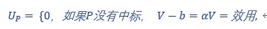 一旦P在拍賣中中標,其效用就是指這個競價與當前博奧迪的真實價值相比,競拍者所節省的金額,效用定義如下。