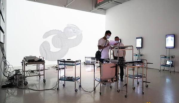 在北京時代美術館,來自10余個國家和地區的80余位藝術家借助AR、VR、生態藝術、人工智能、CG技術等制作的40余件數字藝術品展陳,吸引了不少市民前來參觀。