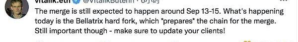 XRP/HKD-1.72%正如Vitalik所言,以太坊的合并預計將在9月13-9月15日發生,而今日的Bellatrix硬分叉升級,則是這次合并的前置準備工作,但它仍然會很重要。
