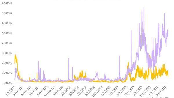 以太坊的交易費用占總區塊獎勵的百分比遠高于比特幣。這意味著以太坊礦工不僅關注幣價,還會關注Gas費的走勢。即使幣價保持不變,交易費的增加也將足以激勵以太坊礦工增加算力。