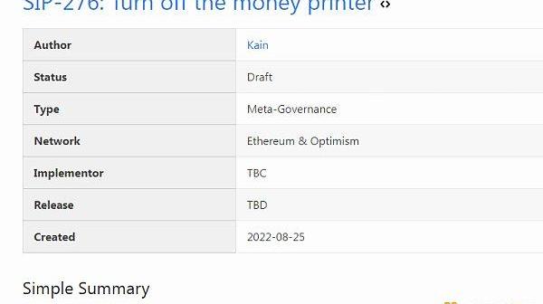 不過在2022年8月25日,Synthetix創始人KainWarwick提交了一份提案SIP276,該提案將結束SNX通貨膨脹,將SNX總供應量限制在3億。