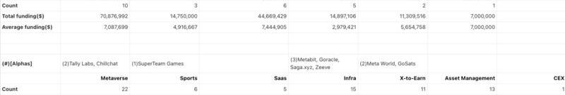 由上圖可見,X-to-earn、WebBuilder、Legal是經驗證的beta。其具體融資數據如下。