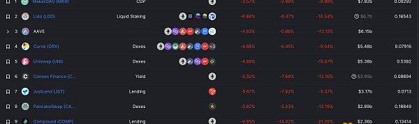 DeFi項目鎖定資產前十排名及鎖倉量數據來源:defillama