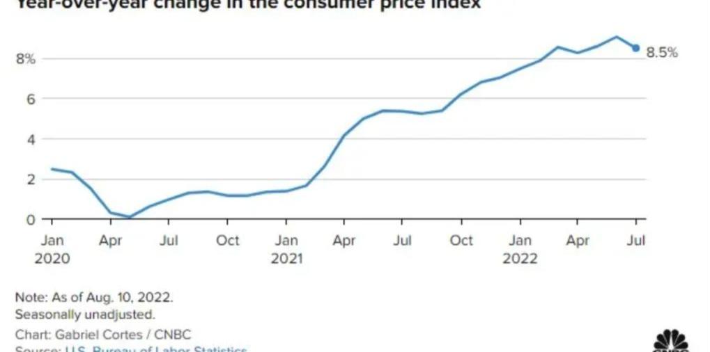 7月美國CPI數據錄得8.5%水平低于市場預期。