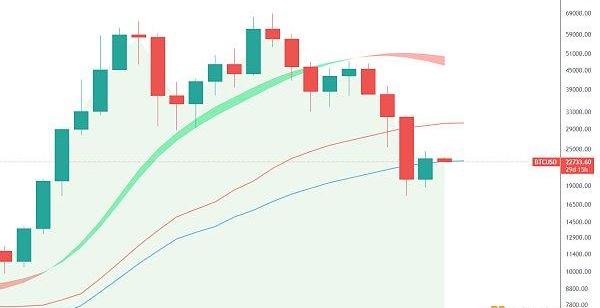 BTC周線依舊處于上行通道內運行,前期大跌也未有效跌破下軌支撐,不破將有在這一帶震蕩筑底機會,自前期插針至17600到目前,整體保持低點抬高高點創新高的走勢,并且下方指數也已進入紅色區域,快線已拐頭向上,后面兩線將有金叉機會,歷史上前兩次對應BTC熊市底部區域,后面兩線金叉,BTC走出底部結構迎來牛市行情。所以目前也有可能屬于震蕩筑底階段,周線支撐18000-19000,回調不破中長線可以考慮逢低布局。