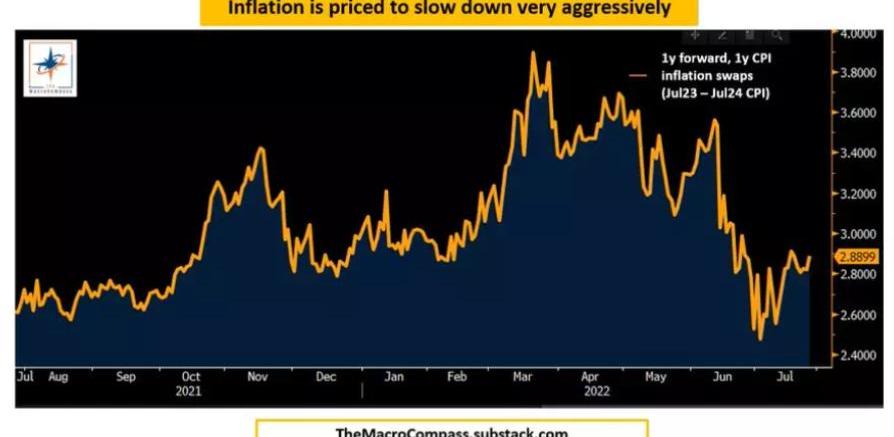 這一切都源于債券市場在過去幾個月中對通貨膨脹形成的非常強烈的看法:它將會下降,而且速度非常快。在23年7月至24年7月之間,CPI的定價約為2.9%=PCE~2.5%,基本上達到了目標。