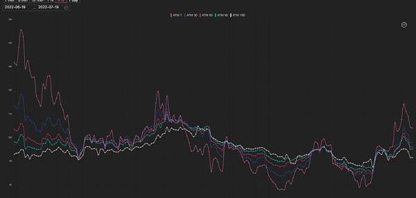 毫無疑問的是,這種穩態是暫時的。隨著交割的到來,保證金與對沖倉位的釋放將會帶來可觀的拋壓。目前,僅7月22日到期的期權合約中,就堆積了接近9萬ETH的正Delta,甚至與9月30日到期的季度合約規模相當,交割后產生的拋壓可想而知。