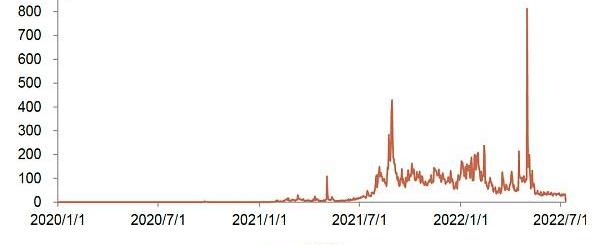 資料來源:Messari,中金公司研究部;注:2022年6月的200.27美元異常高值由GasPrice勒索攻擊引發